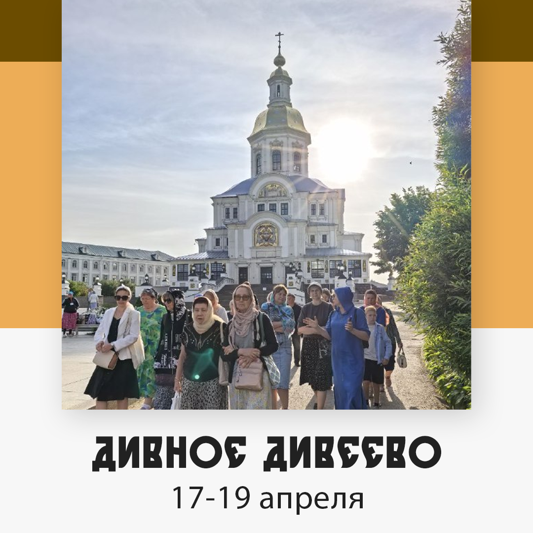 Дорогие паломники «Самары православной»! Дивеевский маршрут — особое паломничество к преподобному Серафиму, отличающееся глубиной и душевной теплотой. Ощущение присутствия преподобного Серафима возникает задолго до прибытия — уже с момента отправления из Самары паломники чувствуют его незримую поддержку. В Светлую седмицу, 17-19 апреля, приглашаем в дивное Дивеево, Четвертый Удел Пресвятой Богородицы.