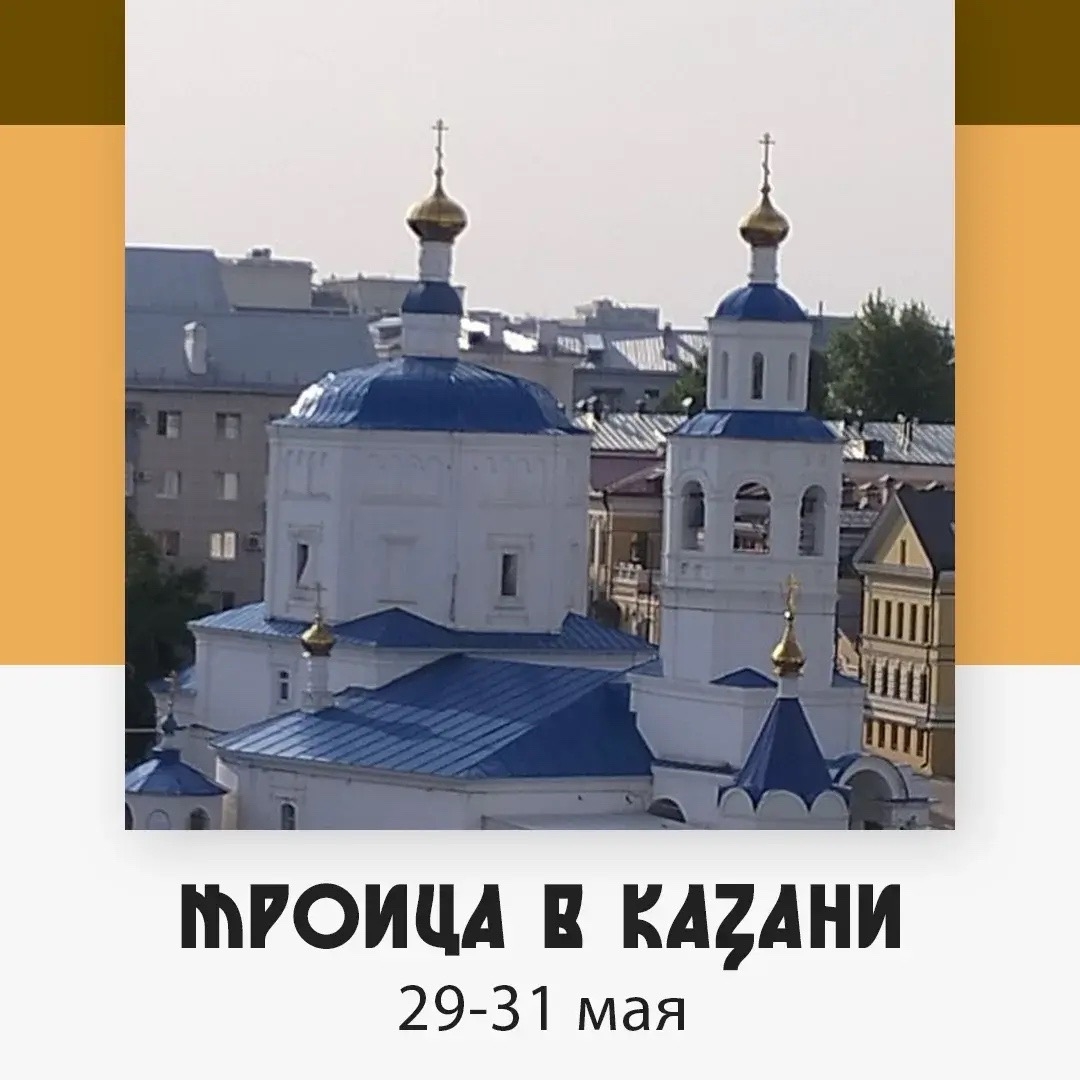 С 29 по 31 мая состоится паломническая поездка в Казань и Раифский монастырь на праздник Святой Троицы (Пятидесятницы).